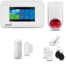 HUXGO® HXA006 - Sistema de seguridad inalámbrico WiFi + GSM con 3x detector de movimiento y 1x sensor para puerta / ventana | KIT de sistema de alarma para el hogar con App TUYA